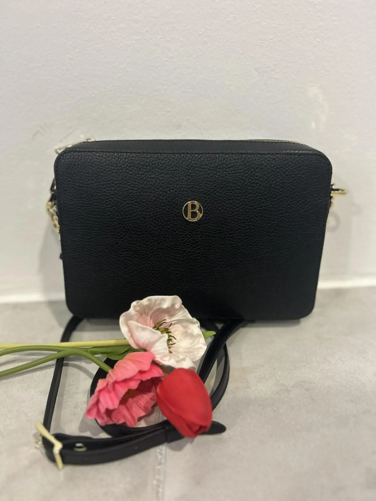Egyterü női oldaltáska, magas minőségű bőrből készült, állítható láncos vállpánttal, fehér színben, elején felirattal.