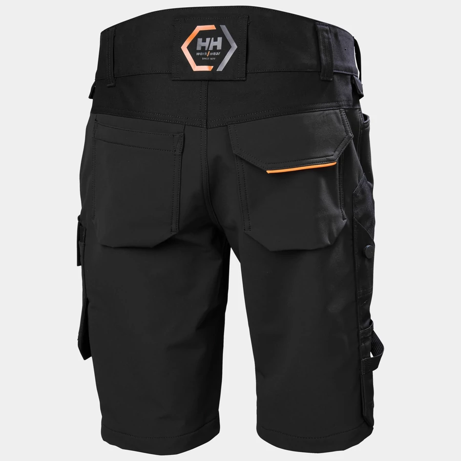 A Chelsea EVO 2.0 CNCT Shorts rövidnadrág a HH Connect™ termékcsaládot gazdagító munkás rövidnadrág. A megbízhatóságot, az innovációt és az északi ihletésű stílust keresők számára készült prémium minőségű anyagokból, többek között AMANN cérnával, YKK® cipzárakkal, Cordura® szövetmegerősítéssel és négy irányban elasztikus sztreccs anyaggal. Az előremutató tervezési részletek közé tartozik a széles hátsó középső övhurok, ami tovább növeli a stabilitást és erősséget, a kényelmes, formázott derékpánt és az optimális mozgást segítő betoldott lágyékrész. Használja a beépített tárolóhelyeket – a megerősített vonalzótartó zsebet és a többrekeszes combzsebet –, és igazítsa a nadrágot a személyes igényeihez a kompatibilis HH Connect™ zsebmegoldásokkal, melyeket a deréktájon rögzíthet. A személyazonosító kártya-tartóval és védőbevonatú fémbetétes patentokkal ellátott rövidnadrágban a stílus és a hasznosság találkozik.