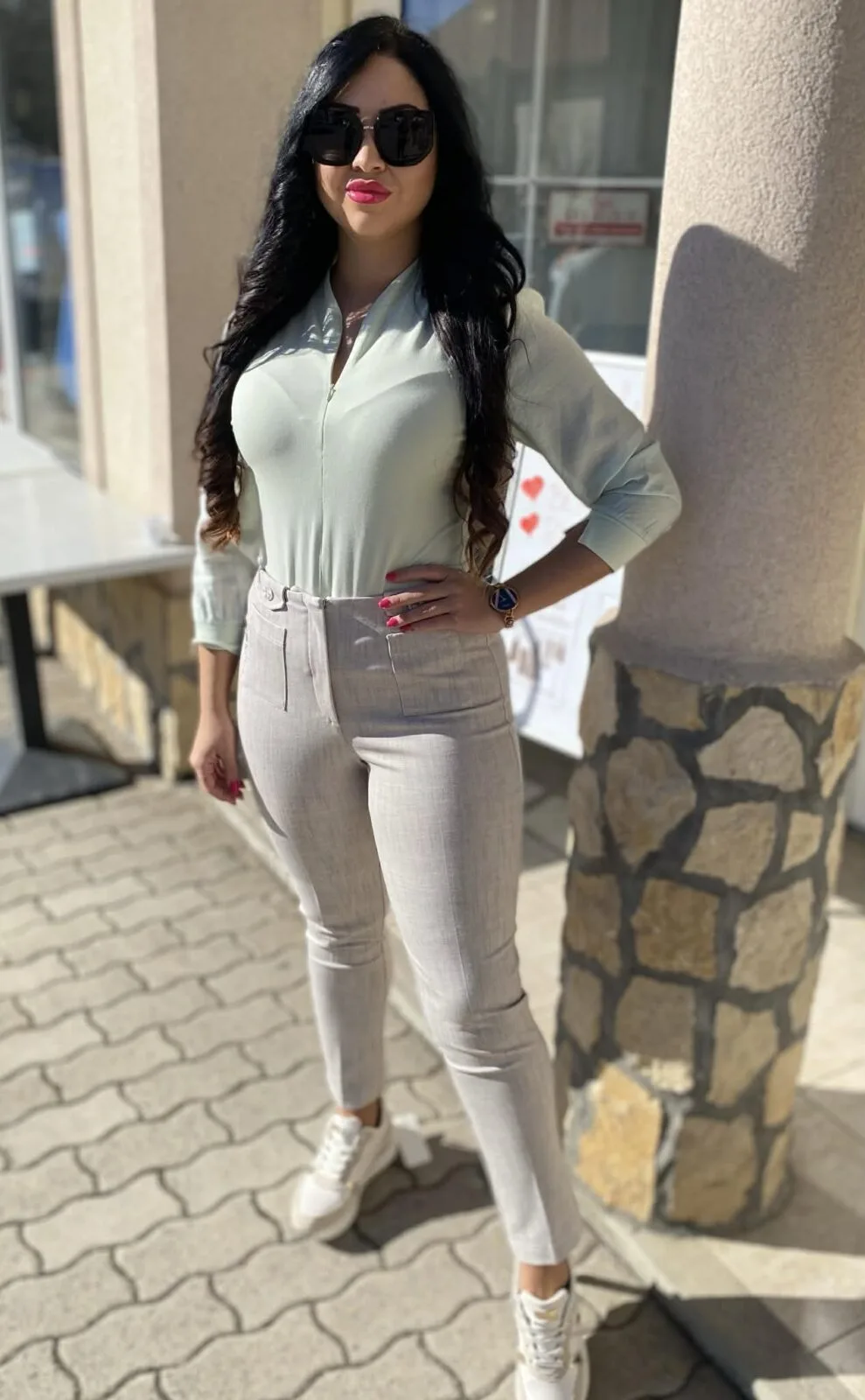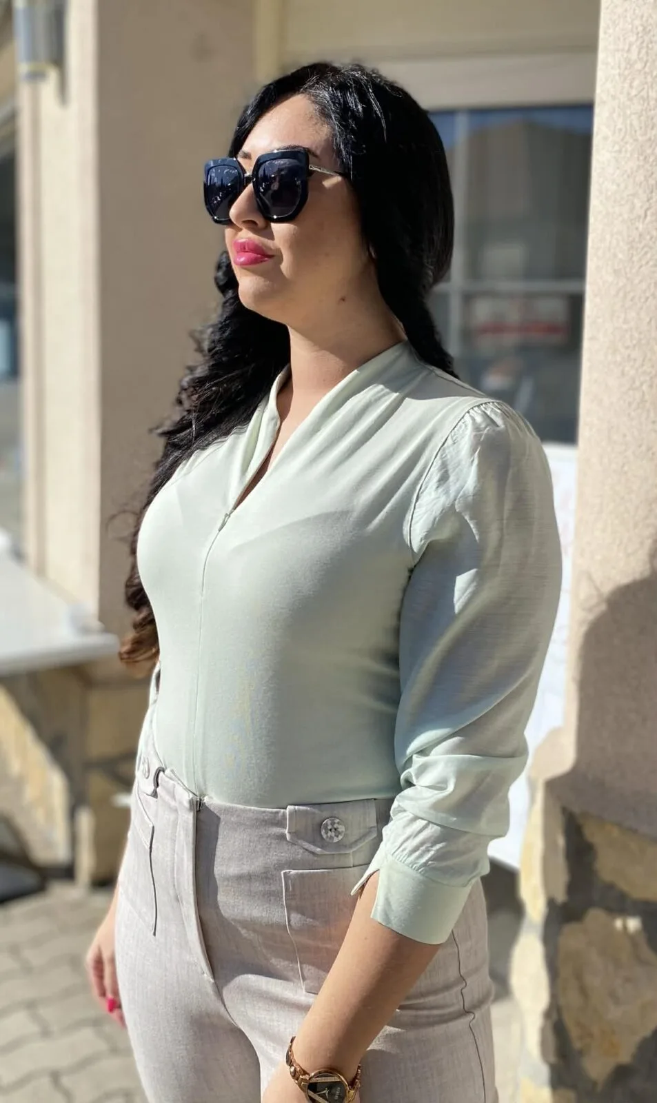 Pasztell zöld színű, viszkóz Magenta felső, egyenes fazonú. Hátul filmnyomott Magenta márkajelzés.