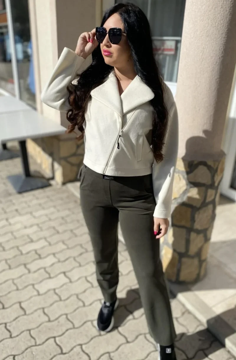 Vaj színű, kevert szálas Magenta kabát, laza fazonú, rövid állású, elején zippzáras záródással, zsebekkel. Belül rávarrt textil Magenta márkajelzés.