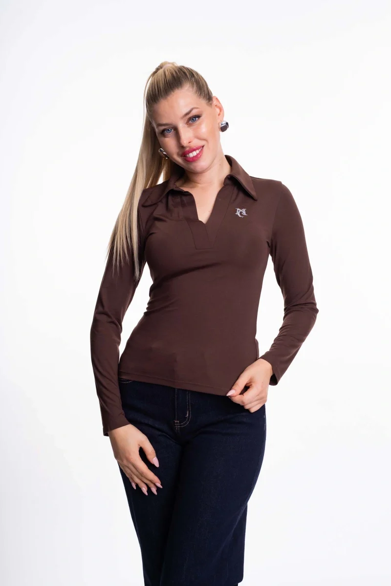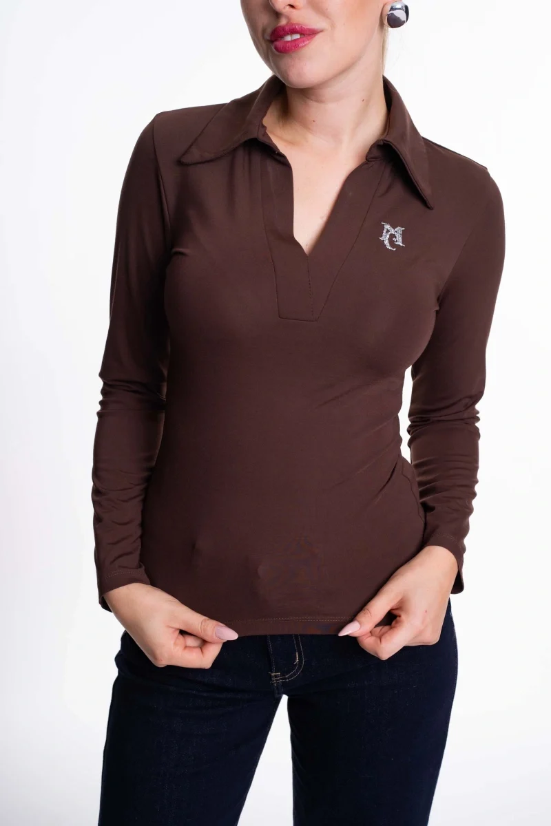 Elasztikus anyagból készült, karcsúsított felső, strasszos matricanyomott márkajelzéssel.
