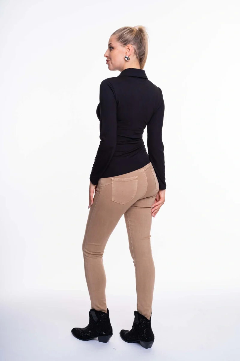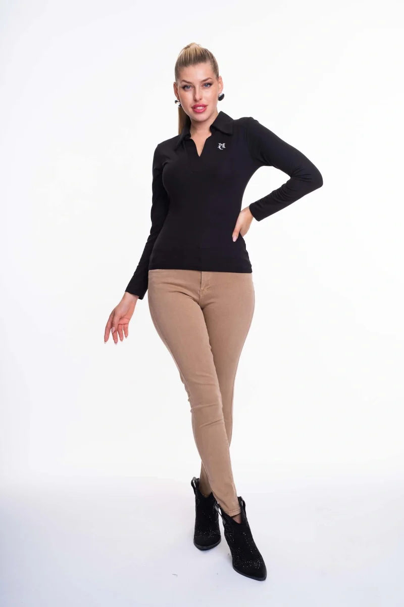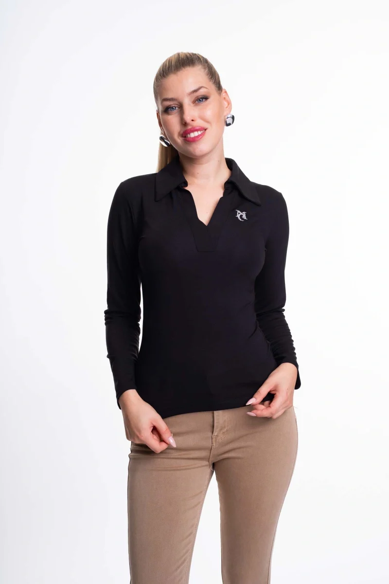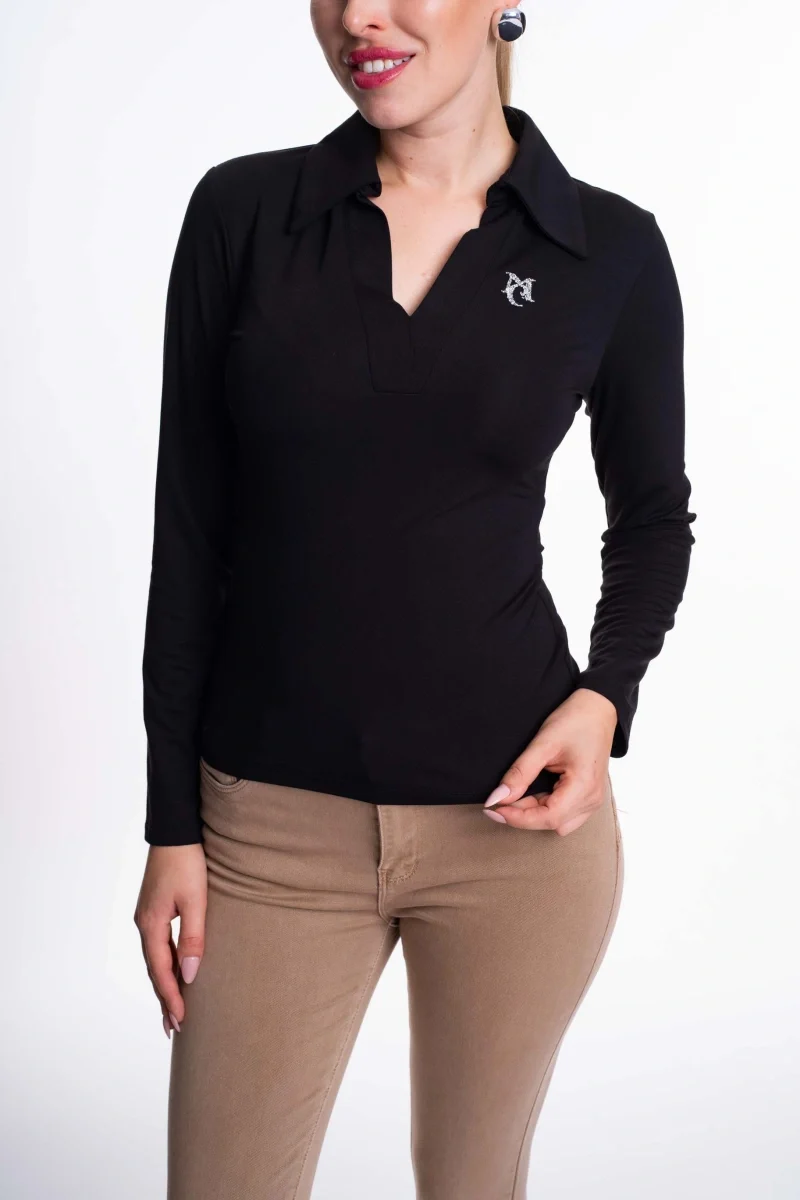 Elasztikus anyagból készült, karcsúsított felső, strasszos matricanyomott márkajelzéssel.