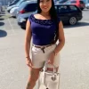 Enyhén elasztikus anyagból készült svédzsebes short, öv kiegészítővel, mosáshoz levehető kis fém márkajelzéssel.