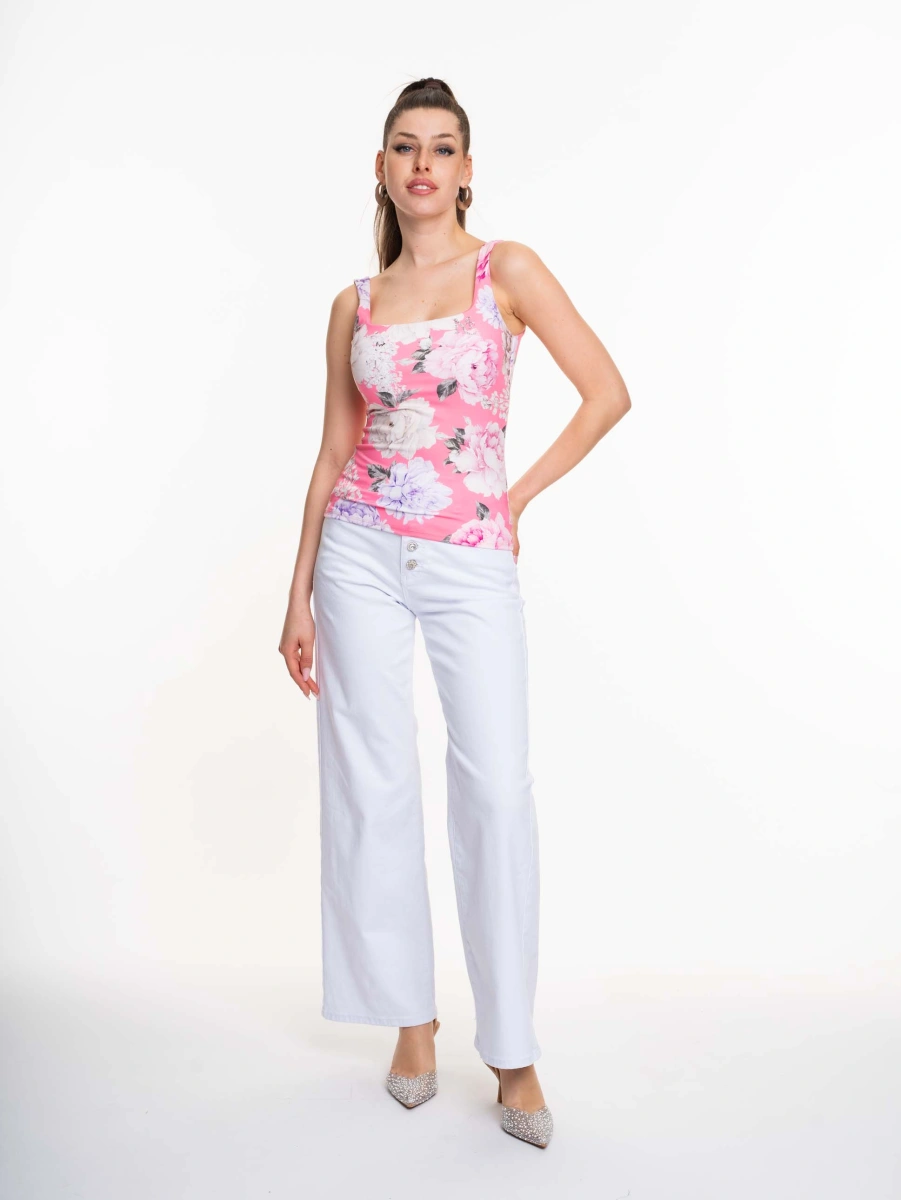 Elasztikus anyagból készült felső, mellrészen bélelővel, strasszköves matricanyomott márkajelzéssel.