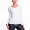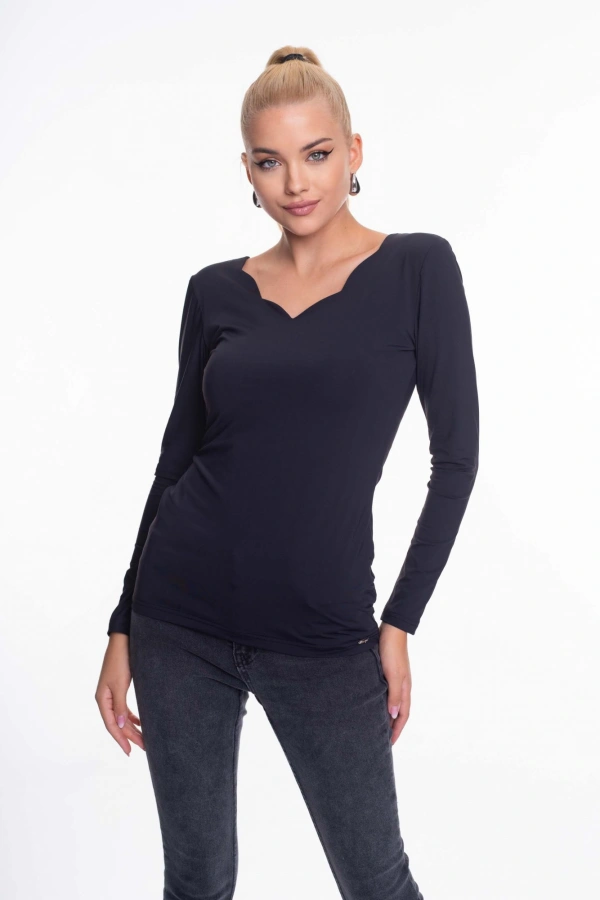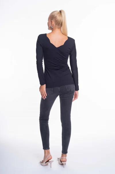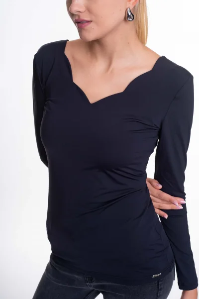 Elasztikus anyagból készült karcsúsított póló, bélelt mellrésszel, kis fém márkajelzéssel.