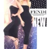 Elasztikus, flitteres anyagból készült, karcssúsított fazonú ruha bélelővel, kis fém márkajelzéssel.