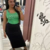 Enyhén elasztikus, vékony blúzanyagból készült gombos záródású ujjatlan blúz fodros díszítéssel, kis fém márkajelzéssel.