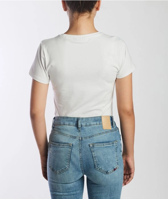 NORMÁL FAZONÚ, KEREKNYAKÚ POLÓ, ELEJÉN NYOMOTT MINTÁVAL DÍSZÍTVE