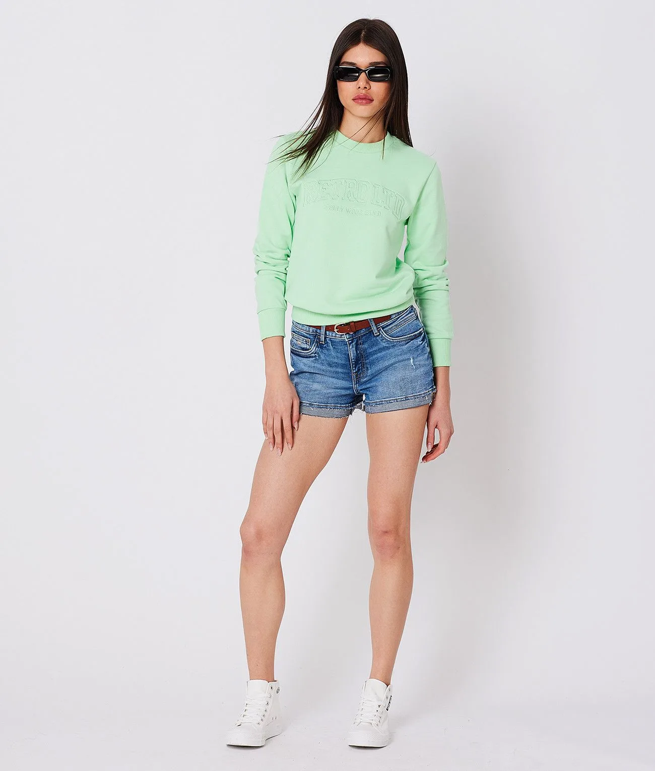 Retro Jeans menta színű ,kereknyakú szabadidő felső. Igazán kényelmes viselet a mindennapokra.